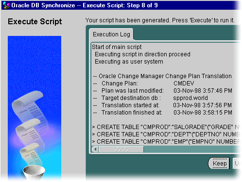 I review the execution log to make sure there are no errors, and then click Keep to confirm the action. |