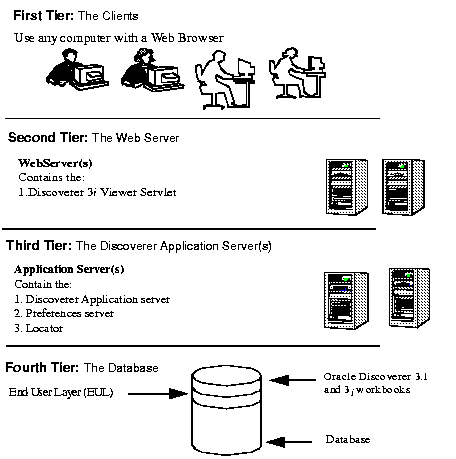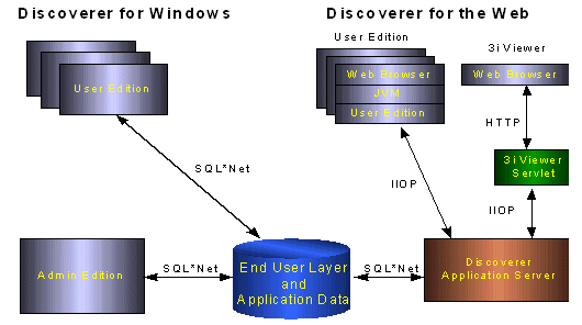 Oracle Discoverer 3i Viewer Edition is deployed using an internet computing architecture that sits on top of the existing Oracle Discoverer Application Server.