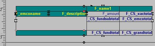 - Click the column named emconame in the G_xact group, and drag it into the new group, G_empcomp. Place emconame after the empcomp column.
