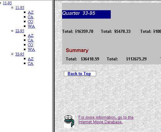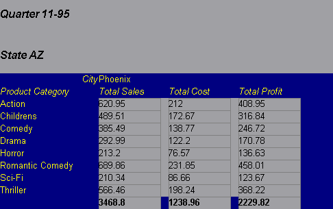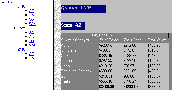 - a detailed Web report containing additional HTML pages, Web links, and Javascript that shows the sales and profit results from a video sales company.