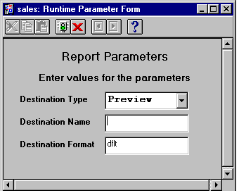 You can let end users tailor report output at runtime making them more productive and reducing requests for new report development. You simply create a runtime parameter form, and end users use the form to set values for the parameters before they run the report.