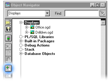 When you launch Graphics Builder, a display is automatically created. Subsequently, you can create a new display by selecting the Displays node in the Object Navigator and clicking the Create button.