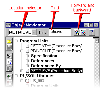 Finally, the Object Navigator allows you to search for objects in the hierarchy, such as local program units, built-in program units, or database objects.