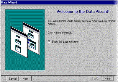 From the Welcome page of the Data Wizard, click Next. Enter the name of the query or leave the default name and click Next.