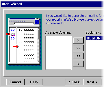 Note that this page of the wizard only appears for report styles that are compatible with bookmarks (e.g., group reports, where each value of the group column may appear in the bookmark list).