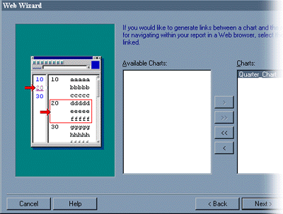 If you have charts in your report, you can create hyperlinks between chart values and corresponding data in the report output. Chart hyperlinks are only available in HTML output.