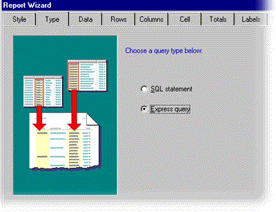 In the Report Wizard, you can choose whether to build an SQL or Express query.