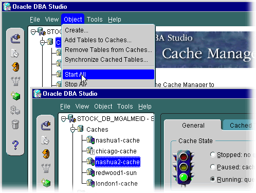 Using Cache Manager, you can start or stop caches or pause or resume caching on one or more caches.