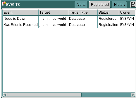 To register an event, an administrator specifies one or more tests in the Events pane and then registers the event against one or more managed services or groups of services. When the Intelligent Agent(s) detects a critical occurrence by performing tests on the service(s), it notifies the Oracle Management Server, which then notifies the appropriate administrator console based on the permissions that are set for the event.