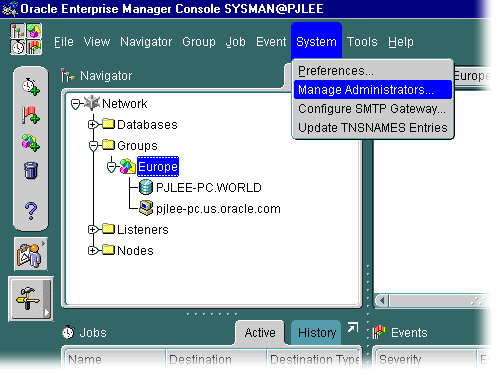 The repository is created with one Super Administrator account named 'Sysman'. The Sysman Super Administrator then logs into the Console and creates other users with the Manage Administrators command. |