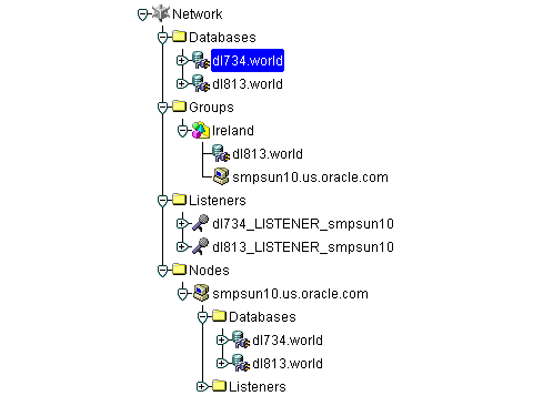 are installed. A target can appear beneath more than one parent folder, but selecting either listing has the same result. For example, you can either select a database in the Databases folder, or beneath the node where the database is installed. |