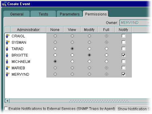 alert is generated. The Event Notification Filter allows you to specify exactly which conditions warrant notification. The default settings are defined with administrator Preferences. Changes to the settings on this page only affect the current event. To see when administrators are available for notification, click Notification Schedule. |