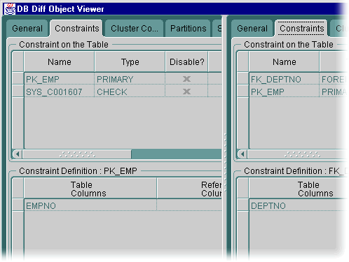 To obtain more information on the selected object pair, I launch the object viewer. With the object viewer, I can perform a side-by-side comparison of the property pages that list the attributes for the two objects.