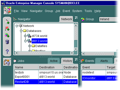 manage the Oracle environment. You can resize each pane, or expand a pane to fill the Console window. The Console also features a set of tool 'drawers' that launch integrated applications. |