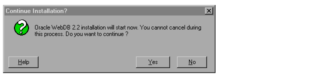 If you are installing WebDB for the first time in an Oracle Home for the 7.3.4, 8.0.5, 8.0.6 database, the install program will ask you shut down all Oracle services during the installation process, then restart them.