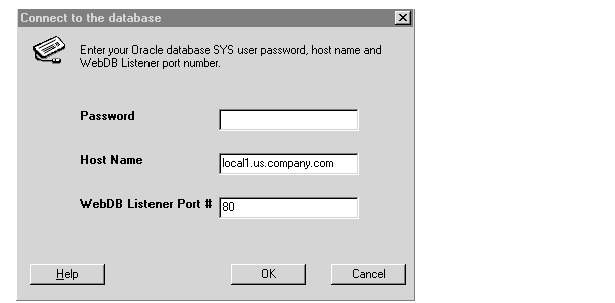 - Password is the SYS user password that you use to log on to the Oracle database where you are installing WebDB.