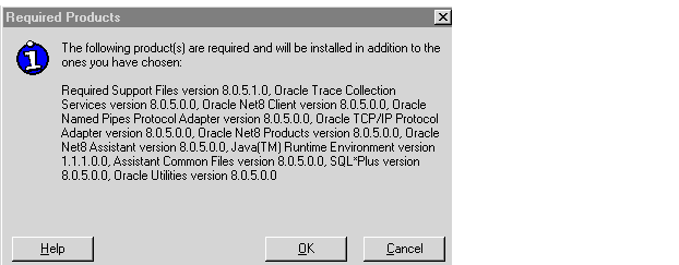 If any of the above components or other dependencies are not installed in the Oracle Home you specified in Step 4, a message similar to the following displays.
