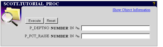 5. Click Tutorial_Proc to display the Execute Procedure page. This is where you provide values for the arguments defined in the procedure.