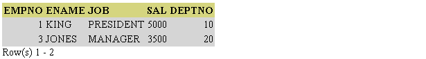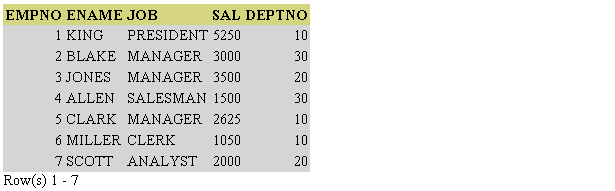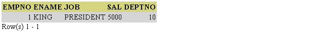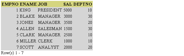 EMPNO  ENAME  JOB  SAL  DEPTNO