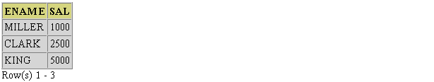 17. Compare the salaries of the employees in Department 10 (KING, CLARK, and MILLER) with those that you noted down at the end of the previous exercise. Executing TUTORIAL_PROC has increased them by 5%.