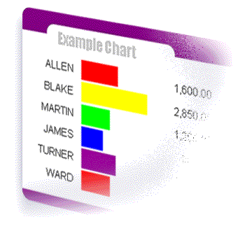 Charts display data graphically with vertical or horizontal bars. Charts can include parameters so that end users can specify what data to display. |
