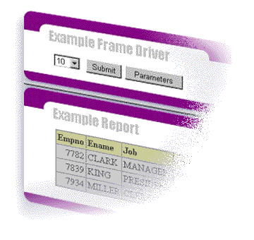 Frame drivers are Web pages that are divided into two HTML frames. The selections made in one frame determine what is displayed in the other. Frame drivers display everything on one page; end users do not have to navigate back to change selections. |