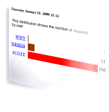 Oracle WebDB records usage information about components in the activity log. DBAs can view reports and charts based on the activity log and use this information to improve the support offered to end users. For example: