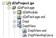 For example, the files DeptView.xml and DeptViewImpl.java are in the package d2ePackage because they reside in the directory d2ePackage: