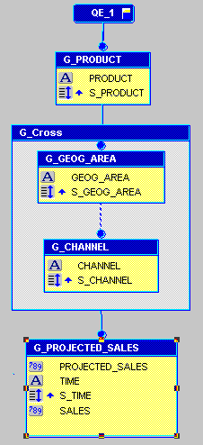 The report that you create in this exercise will present the monthly regional and channel projected and actual sales for each product division. Your Express query will have two measures, and each measure will be dimensioned by product, time, geographic area, and channel.
