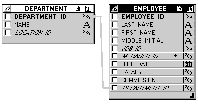 Query Builder automatically displays a line indicating underlying relationships between the tables you have selected.