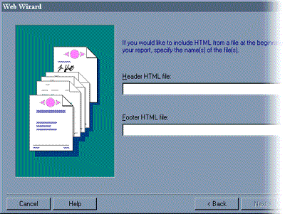To include the contents of an HTML file as a header page and/or footer page (valid for HTML output format only), specify the name of the file(s).