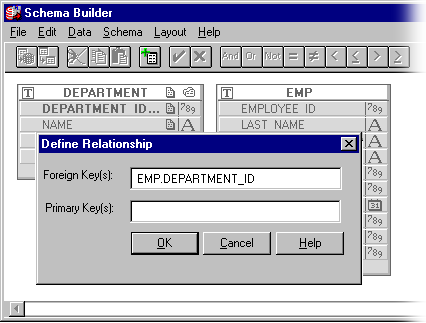 Select the Define Relationships option from the Schema menu.