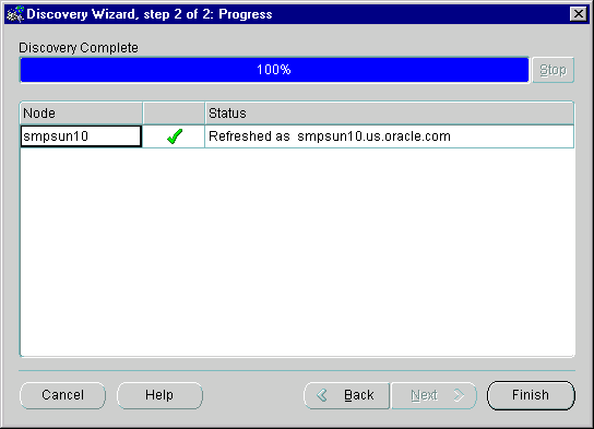 The Discovery Wizard searches the network for the nodes you specify. If that node has an Oracle Intelligent Agent running, it will be added to the Enterprise Manager Console Navigator for management along with any services running on that node. You will be able use these services as targets in jobs and events.