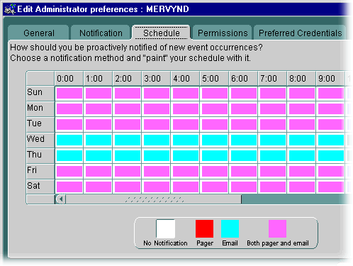 You use the Schedule page to define when you are available for notification, and how you want to be notified.