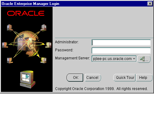 Manager administrator account credentials to connect to the Management Server. During the remainder of the session you may be prompted for credentials when connecting to a service, such as a database. This occurs if you do not have preferred credentials defined for that service. In this case, don't re-enter your Enterprise Manager account credentials, unless they are the same as those that are defined for you on the target service. |