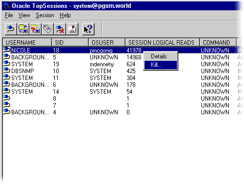 Apparently, the developer is loading data onto the production system during production time. Should I call her before I kill her session? No-- kill first, call later. She should know better. Soon after, the supervisors report that the system is running well again. Now I need to get back to my schema propagation task. |