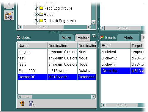 Previous versions of Enterprise Manager automatically refreshed Job and Event History, which could lead to performance degradation with systems running large numbers of jobs and events. In Enterprise Manager 2.1, History pages in the Jobs and Events panes now refresh when you click the History tab. If the History tab is already displayed, you can display recent Job and Event History by clicking the Refresh History buttons. |