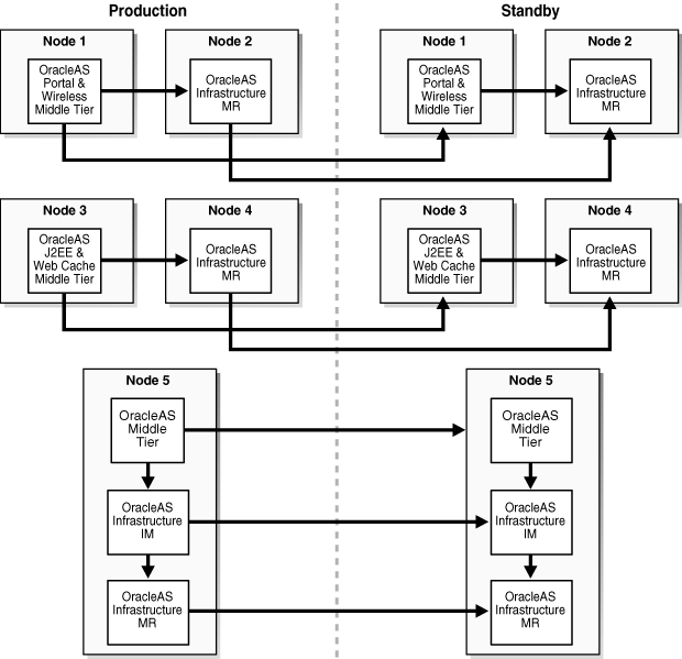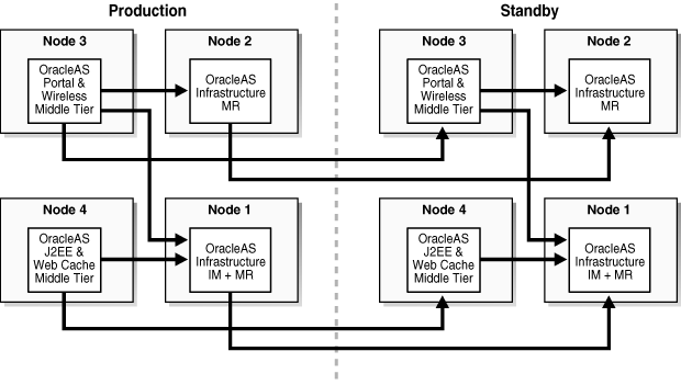 , and so forth. See Section 6.4.6, "Supported OracleAS Disaster Recovery Configurations" for more information.