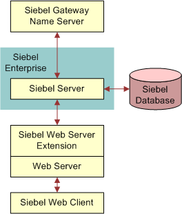 For more details, see Process of Installing and Configuring Servers in a Siebel Deployment, Determining Your Installation and Configuration Method, and other topics. Figure 2 illustrates a simplified architecture for the server elements in your Siebel deployment, after you have installed and configured the software. For a more detailed illustration, see Siebel Deployment Planning Guide. |