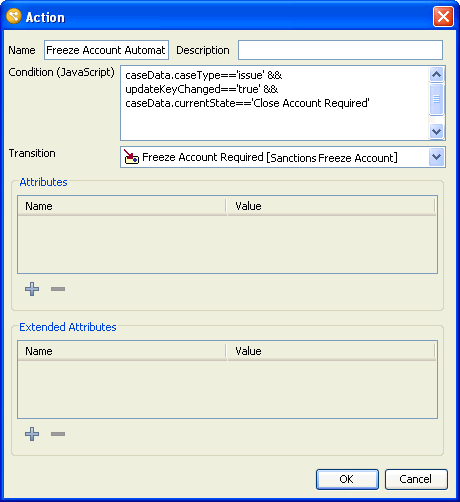 「Attribute」リストおよび「Extended Attribute」リストには、状態の失効時に属性および拡張属性に対して行われる変更が表示されます。