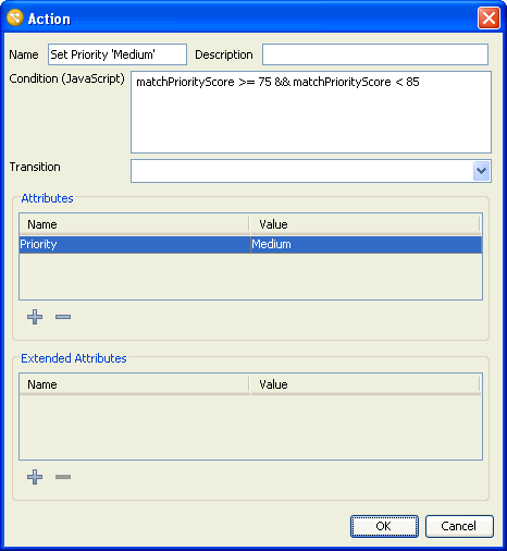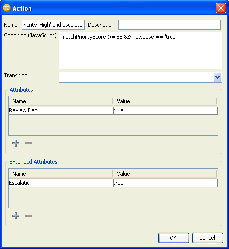 最も高いマッチを最初に処理する必要があるというビジネス要件があるとします。マッチ優先度スコアが85以上のアラートは高優先度として処理し、エスカレーション・フラグも設定します。マッチ優先度スコアが75から84の間のアラートは、中優先度です。
