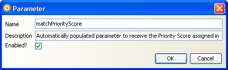パラメータは「Parameter」ダイアログで定義しますが、このダイアログは、「Case Management Administration」内の「Workflow Editor」にある「Parameters」タブからアクセスできます。新しいパラメータを作成する場合は「+」ボタンを押し、パラメータを編集する場合は既存のパラメータをダブルクリックして、ダイアログを開きます。
