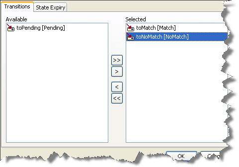 遷移をリスト間で移動するには、次のいずれかの方法を使用します。