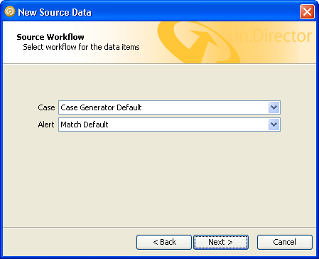 使用するワークフローを選択して「Next」をクリックします。使用するのに最も適したデフォルトのワークフローは、ケースの場合は「Case Generator Default」ワークフロー、アラートの場合は「Match Default」ワークフローです。