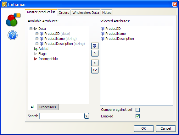 Enabled - このオプションを使用すると、入力データ・ストリームの構成は保持されますが、それをマッチ・プロセスで使用するかどうかのオン/オフは切り替えることができます。たとえば、構成された参照データ・ストリームの一部(全部ではない)と作業データの一部を照合できます。