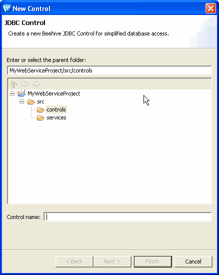 To create a new JDBC control: