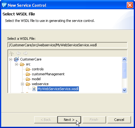 To create a service control using this dialog, you must first have a local copy of the WSDL file for the target web service.