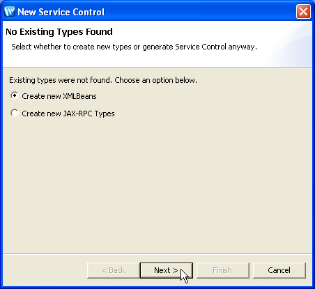 This page will not appear if your service has only simple types or if the necessary types are already available.