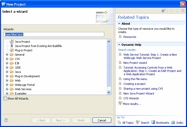 For help with Workshop features, choose BEA Workshop User's Guide from the Contents list.