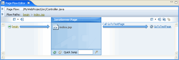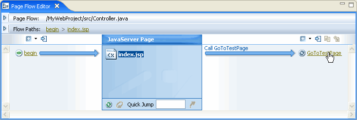 - In the Page Flow Editor view, click on the GoToTestPage link